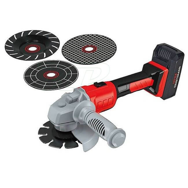 Akumulátorová uhlová brúska s kotúčom sada jeho plastový disk sa otáča stlačením tlačidla, vydáva zvuky pri hraní, disky je možné vymeniť v závislosti od pracovného procesu, ktorý práve vykonávate