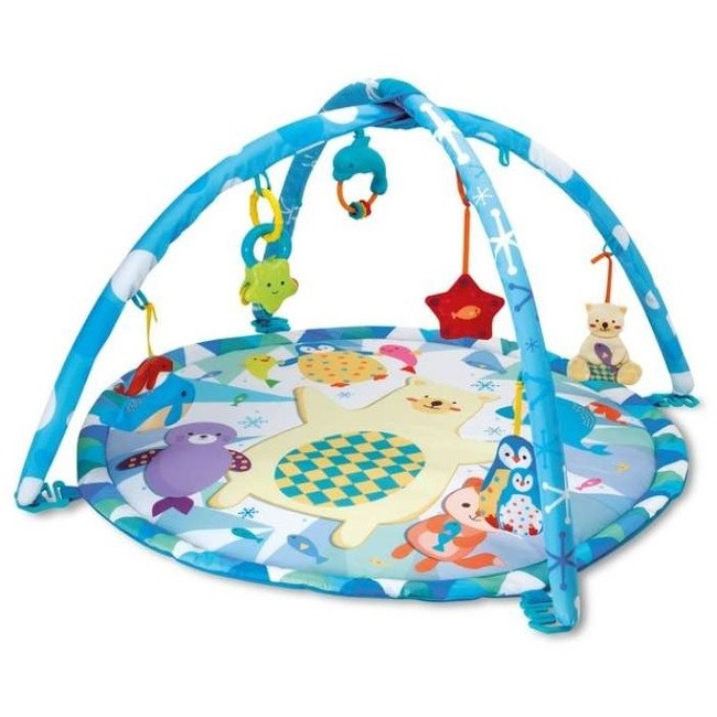 Pohodlná detská podložka na hranie so závesnými hračkami! Arktída dieťa hrací koberec s kupolou mäkký koberec zdobený zvieratkami, na ktorých môže bábätko oddychovať a hrať sa!