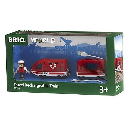 Cestujte osobným vlakom! BRIO Dobíjací osobný vlak červený dobíjací akumulátorový osobný vlak s rušňovodičom, USB nabíjací kábel
