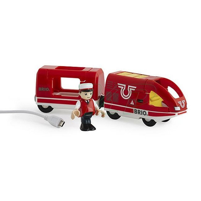BRIO Dobíjací osobný vlak možno pripojiť magneticky, obsahuje 1 vlakový vodič