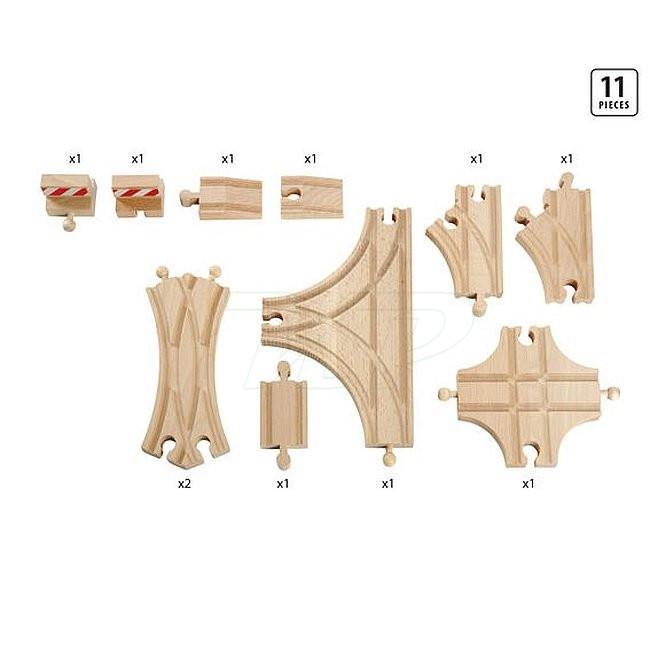 Rozšírte svoju vlakovú trať! BRIO špeciálny rozširujúci balíček obsahuje niekoľko rôznych križovatiek, koľajových prejazdov, rámp a nárazníkov