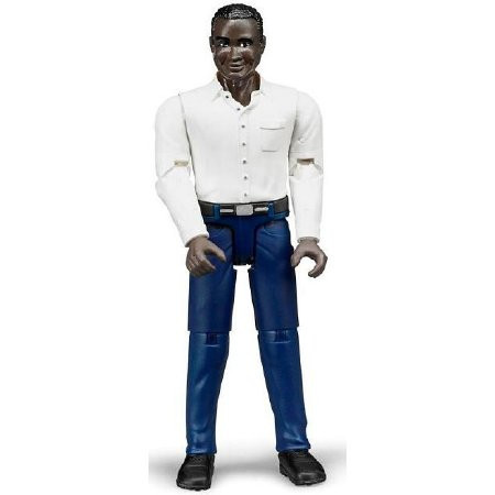 Kiváló minőségű, műanyagból készült Bruder Bworld Sötét bőrű férfi sötétkék nadrágban három irányban mozgatható végtagokkal