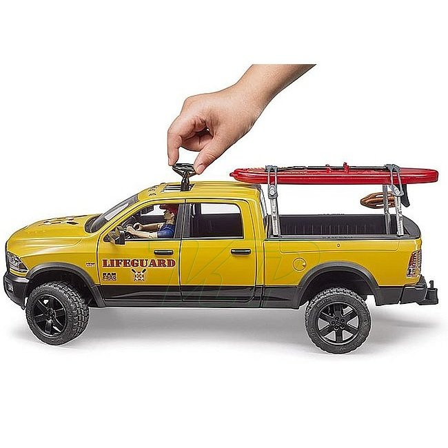 Bruder RAM 2500 Power Wagon pobrežná hliadka, s figúrkou a paddleboardom, so svetelným a zvukovým modulom