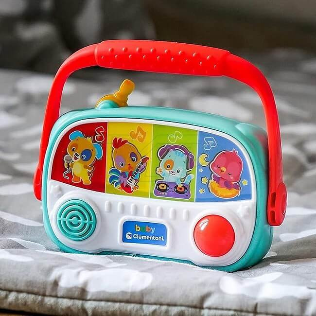 Clementoni Detské rádio každé zvieratko na hudobnej hračke pre bábätká má svoj vlastný zvuk a hudobný žáner, aby sa bábätko mohlo zoznámiť s rôznymi rytmami: popový štýl pre psa, rock pre kohúta, rap pre mačku a relax pre vtáčika
