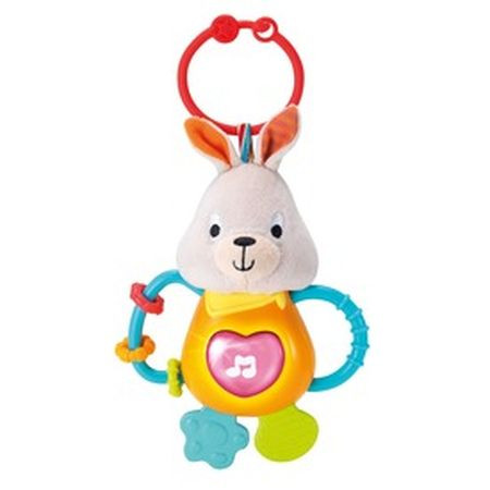 Zajačika možno jednoducho zavesiť na kočík, autosedačku alebo postieľku, zajačik je vybavený aj hrkálkovými krúžkami