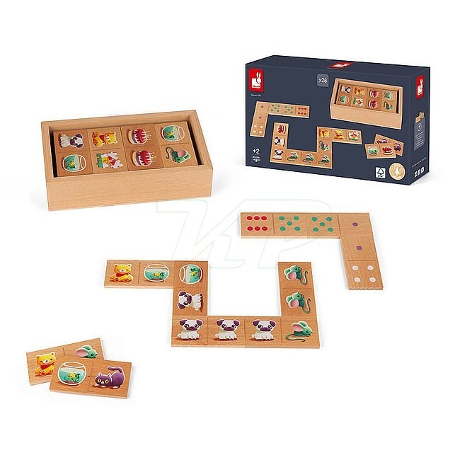 Janod drevené domino niekoľko ľudí môže hrať súčasne, podstatou hry je, že drevené domino musí byť umiestnené otáčaním zodpovedajúcich obrázkov