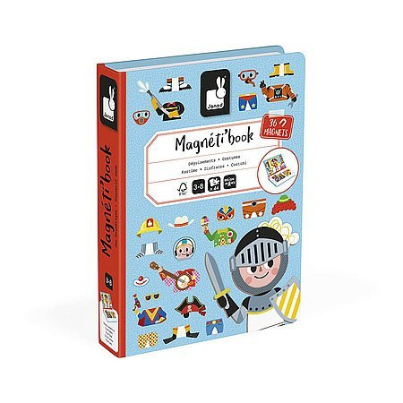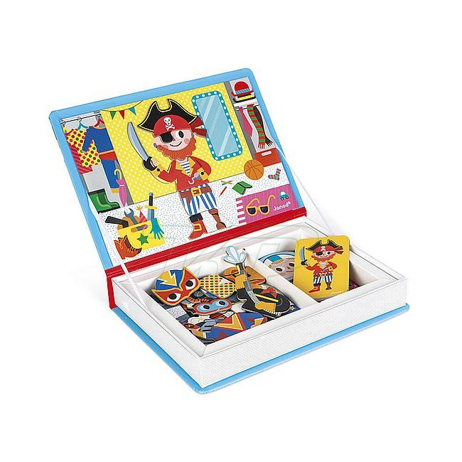 Janod magnetická kniha obliekanie chlapci obsah: 1 magnetická kniha s otváracím obalom, 8 kariet s figúrkami, 36 magnetický kartonový list