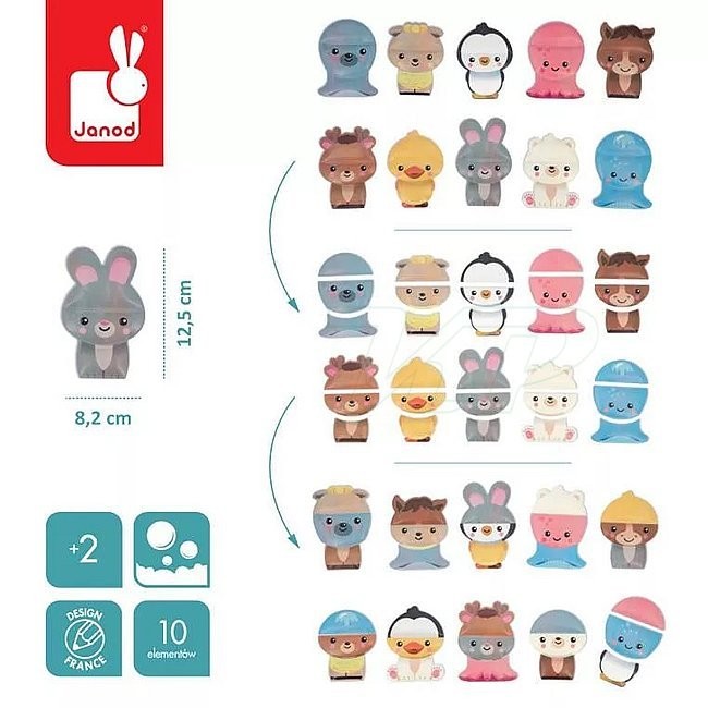 Janod nalepte svetja na dlaždice hračka do vany obsahuje 10 figúrok zvieratiek, ktoré je možné rozložiť na 3 diely