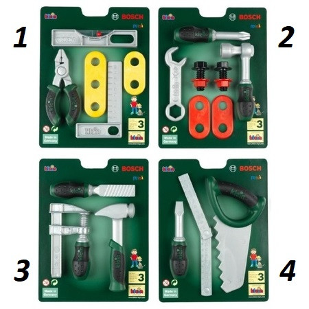 Pracujte s Klein Bosch Mini súprava náradia! Malé náradie Bosch, ktoré sa ľahko drží aj pre malé ruky, je nevyhnutným príslušenstvom pre mladých domácich majstrov