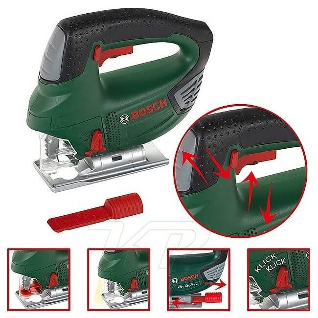 Klein Bosch priamočiara píla rozvíja manuálnu zručnosť a technický cit, na prevádzku sú potrebné 2 batérie R6-AA (nie sú súčasťou balenia)