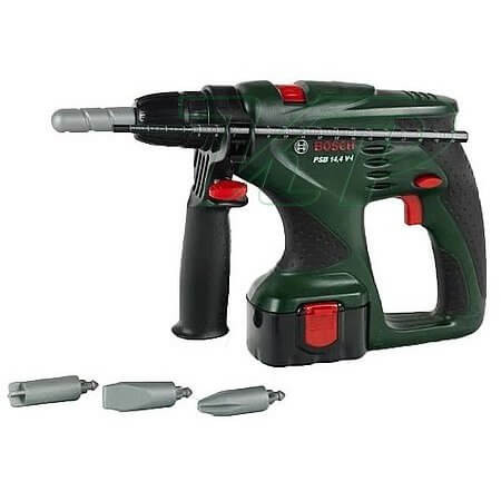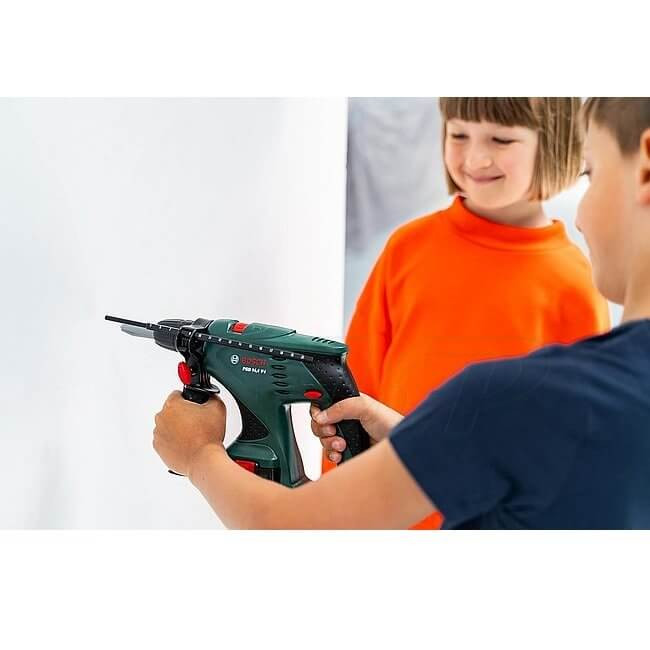 Vyvŕtajte dieru do betónu! Klein Bosch príklepová vŕtačka väčšia zelená hračkárska príklepová vŕtačka s hlavou, ktorá sa otáča v dvoch smeroch, dve rýchlosti, realistické zvukové efekty