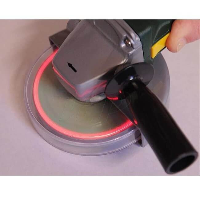 Klein Bosch uhlová brúska po zapnutí sa kotúč začne otáčať, stlačením priehľadného krytu sa ozve zvuk brúsenia a svetelný modul vytvorí ilúziu iskry