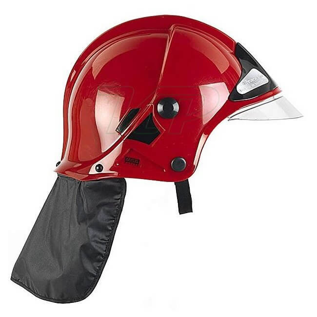 Klein Hasičská prilba na chrbte je chránič krku, vnútorný rám v prilbe je nastaviteľný, to robí z hasičskej prilby univerzálnu veľkosť ochranné pomôcky