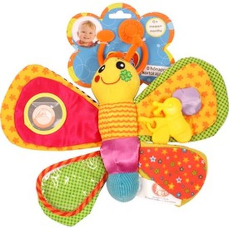 Motýľ mäkké detská hračka na krídlach je aj zrkadielko, píšťalka a maškrta, pestré farby a hmatové materiály okamžite vzbudia záujem bábätka