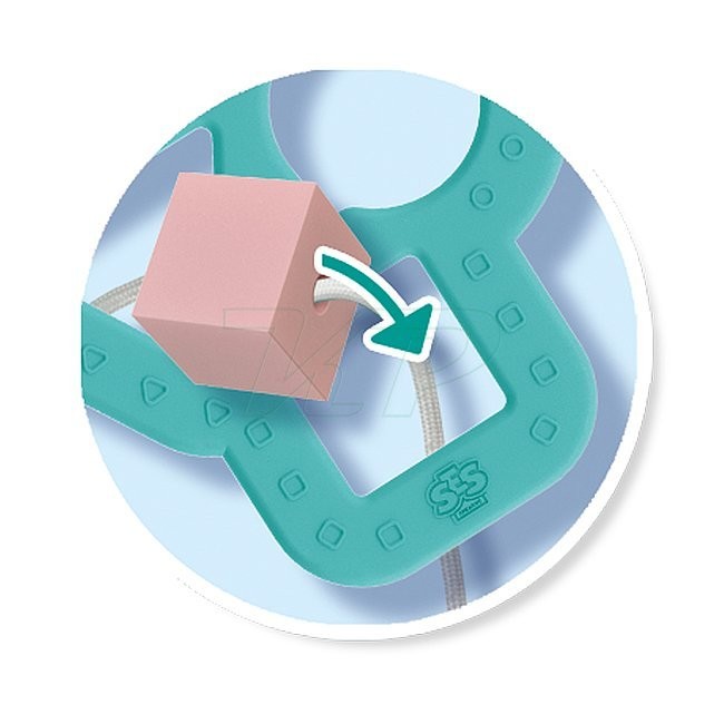 SES môj prvý selektor formulára obsah sady: lano z jemného materiálu, na ktorom sú navlečené 4 tvary a 1 plastový rám