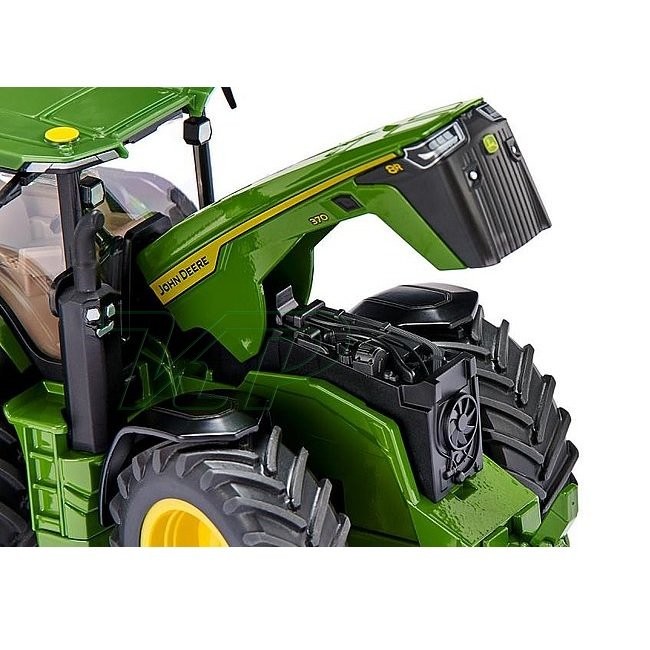 Ťahajte príves s traktorom! Traktor SIKU John Deere 8R 370 je zelený traktor John Deere 8R 370, ktorý môžete použiť na ťahanie prívesov a iných poľnohospodárskych strojov