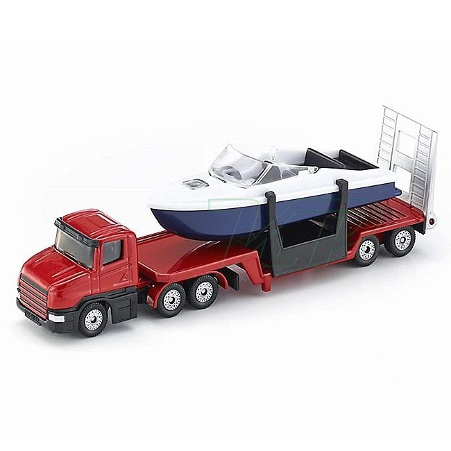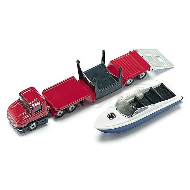 SIKU Scania s ťažným prívesom a motorovým člnom 1:87