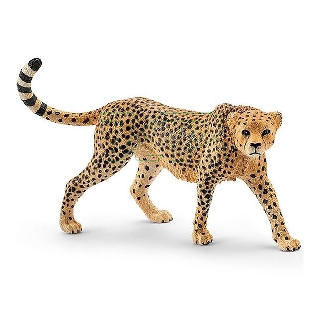 Samica geparda Schleich dokáže pri skoku otáčať telom, čo jej umožňuje pružná chrbtica, takže ak utekajúce zviera náhle zmení smer, stále ho dokáže chytiť