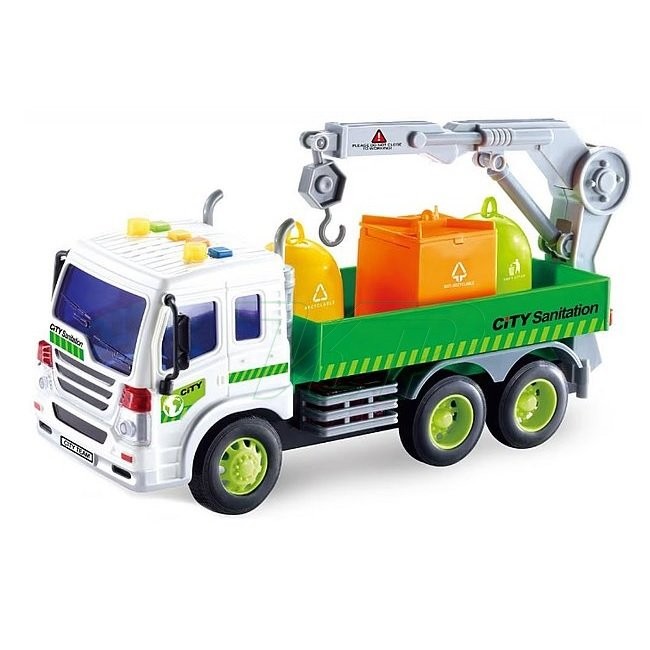Odvoz selektívneho odpadu z mesta! Selektívneho odpadu nákladné auto so svetlom a zvukom bielo-zelený autožeriav, ktorým môžete prepravovať selektívny odpad vznikajúci v meste