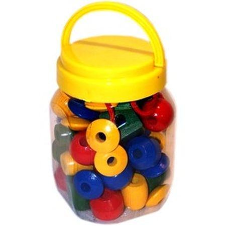 Drevené korálky sú rôznych farieb, šnúrka je navrhnutá tak, aby uľahčila zapichovanie korálok