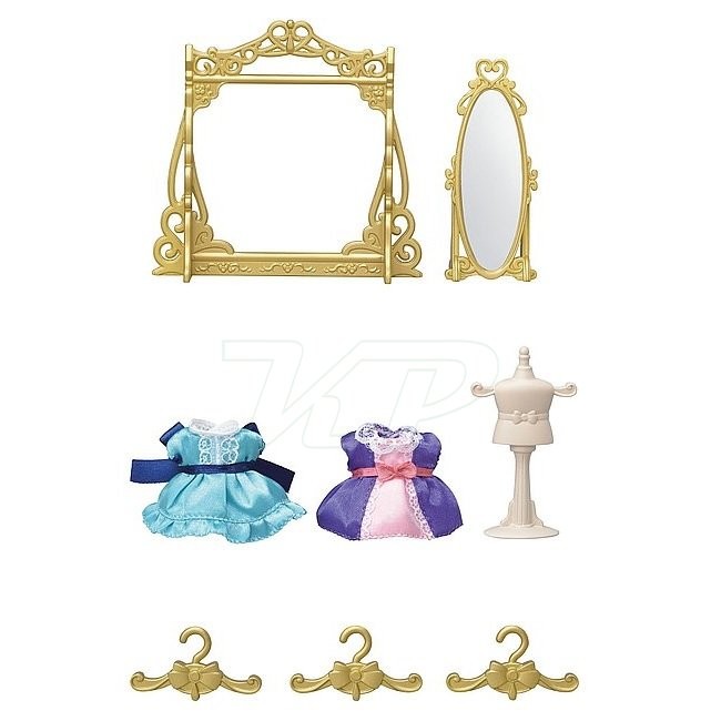 Do módneho butiku dorazila nová kolekcia! Módna súprava Sylvanian Families Mestský butikový módny set na zákazníkov čaká s pozláteným vešiakom, vešiakom, celoplošným zrkadlom, figurínou a dvomi krásnymi saténovými šatami