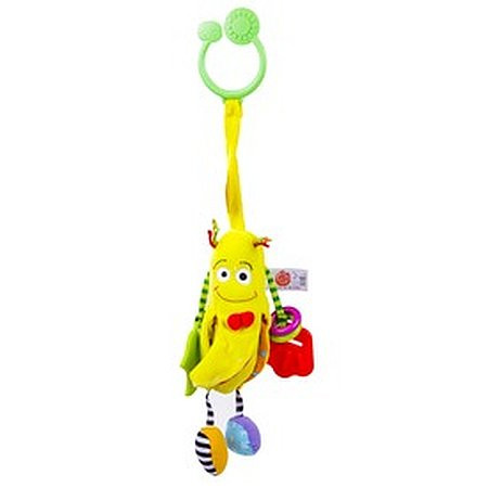 Mäkká textilná hračka pre bábätká! Táto drzá textilná banánová hračka hrká a prská, má na sebe našité dve plastové žuvačky, ktoré zmierňujú ťažkosti pri prerezávaní zúbkov