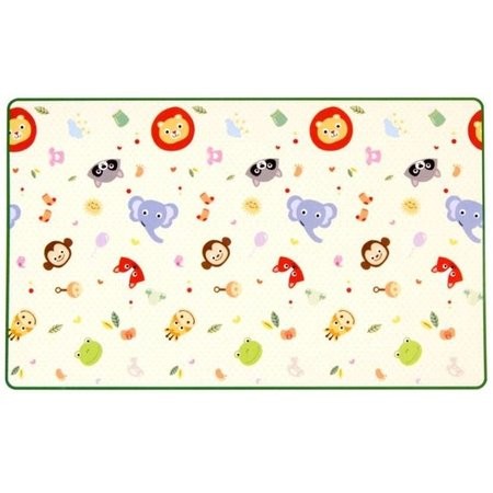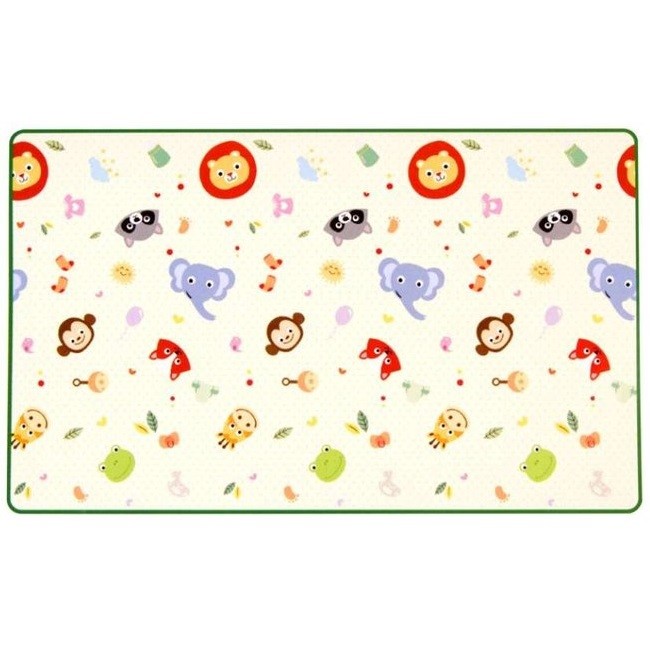 Hrajte ležiac na mäkkom koberci so zvieracím vzorom! Zvieratká špongia hracia podložka rolovací žltý koberec zdobený usmievavými divými zvieratkami, so zeleným okrajom